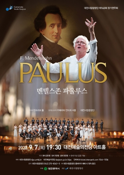 이번 연주회는 19세기 최고의 오라토리오로 손꼽힌 멘델스존의 ‘파울루스’를 빈프리트 톨 예술감독 겸 상임지휘자의 지휘 아래 대전시립합창단과 카메라타 안티콰 서울이 호흡을 맞춘다.