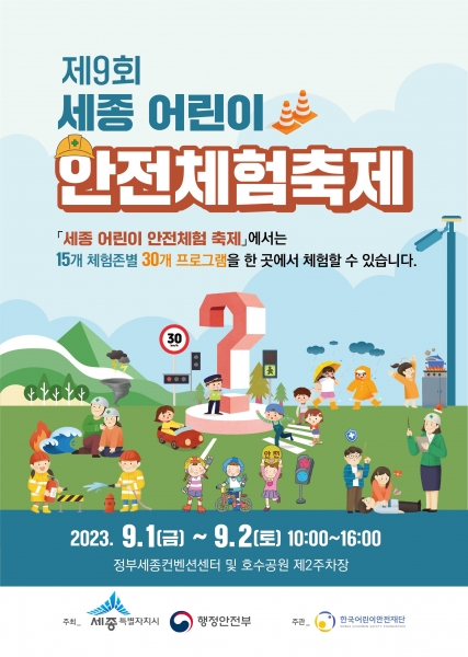 시는 다음달 1일부터 2일까지 정부세종컨벤션센터 및 호수공원 제2주차장에서 어린이 종합 안전체험교육인 ‘제9회 세종 어린이 안전체험축제’를 개최한다고 28일 밝혔다.