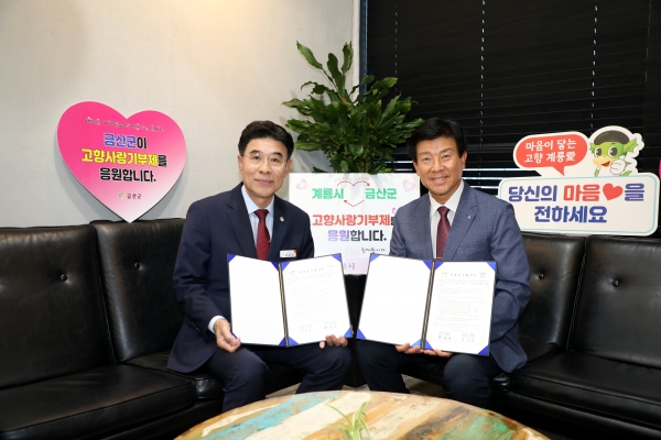 [Ytv영상스토리] 금산군은 지난 29일 충남도청 남부출장소에서 고향사랑기부제 활성화 및 교류를 위해 계룡시와 상호업무 협약을 체결했다.