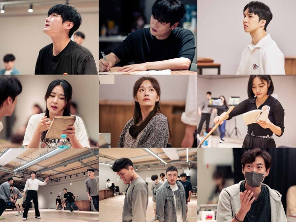 공개된 사진 속 배우들과 창작진은 장면 하나하나 섬세하게 호흡을 맞추고 의견을 나누는 등 작품에 열의를 갖고 참여하고 있다.