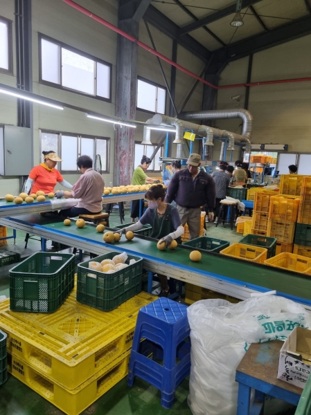수출용 신화배 선별 작업 및 선적(사진=논산시)