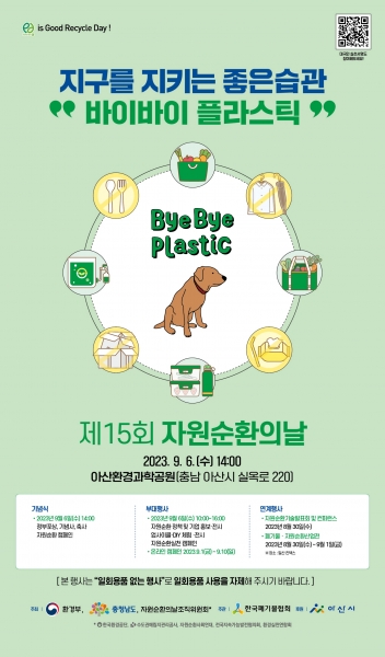‘지구를 지키는 좋은 습관, 바이바이 플라스틱’ 주제인 이번 행사는 환경부·충청남도·자원순환의날조직위원회가 공동 주최하고 한국폐기물협회 주관, 아산시 후원으로 열린다.
