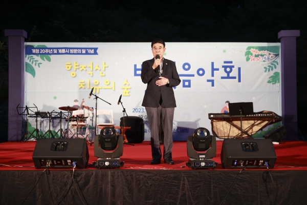 이응우 시장은 “이번 별빛음악회가 일상에서 벗어나 자연과 함께하는 공간에서 심신을 치유하고 새로운 활력을 얻는 계기가 됐길 바란다”며 “앞으로 향적산 치유의 숲이 시민들이 사랑하는 힐링의 명소가 될 수 있도록 다양한 프로그램 발굴 등 운영에 최선을 다하겠다”고 말했다.