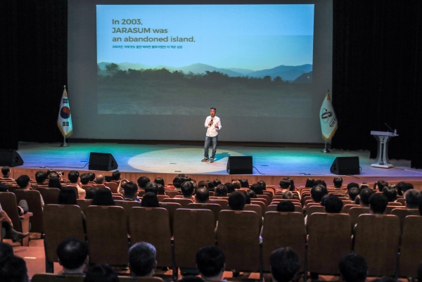 이날 특강은 자라섬 재즈 페스티벌을 첫 회부터 기획하고 현재까지 총괄하고 있는 인재진 총감독이 ‘축제의 시대가 오고 있다’라는 주제로 특강에 참석한 전 직원과 업무실무자, 보조사업자 등에게 축제 발굴 및 방향 설정의 노하우를 전달했다.