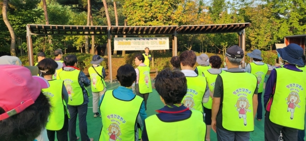 이에 보건소는 17개 걷기 좋은 길 중 하나로 많은 사람들이 이용하고 있으며 장수산이 있어 인구 밀도가 높은 도심 속 공원으로 각광 받는 계림공원에서 맨발 걷기를 희망하는 시민들을 위해 신재춘 걷기 지도자를 초빙해 기본자세 및 주의점을 교육하고 맨발 걷기 체험을 진행했다.