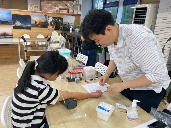 천안시 서북구보건소가 지난 8월 10일 지역 내 한 아동 사회복지시설에서 이동 건강검진을 실시하고 있다.(사진=천안시)