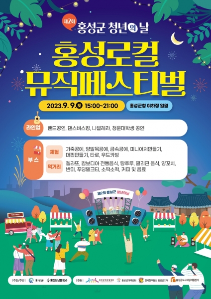 [Ytv영상스토리] 홍성군은 청년의 날을 맞아 오는 9월 9일 오후 3시 홍성군청 여하정 일원에서 ‘제2회 청년의 날 기념행사, 홍성로컬 뮤직페스티벌’을 개최한다고 밝혔다.
