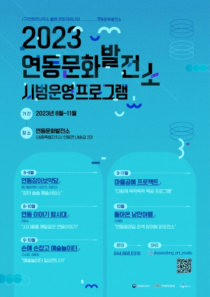시 관계자는 “이번 프로그램은 시민의 문화욕구를 충족하고 문화예술이 일상이 되는 도시 세종을 위한 거점 공간으로서 연동문화발전소의 가능성을 함께 실험해 볼 수 있는 기회가 될 것”이라며 시민의 많은 관심과 참여를 당부했다.