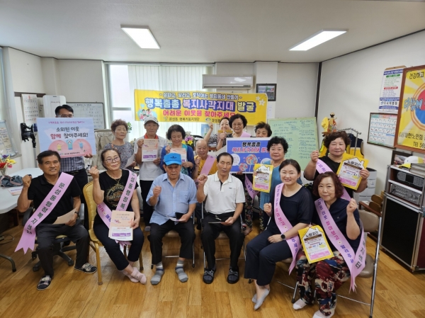 이날 행복키움지원단은 경로당 이용 어르신을 대상으로 복지사각지대 발굴 홍보 안내물을 배부하며 관심과 참여를 유도했다.