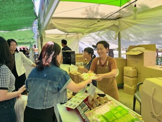 ◎ 사진 설명 : 2022년 충남도청 남문 잔디광장에서 열린 추석맞이 충남 큰 장터 참가 모습, 올해 대전광역시 보라메공원에서 열린 아줌마 대축제 농특산물 홍보 부스 모습