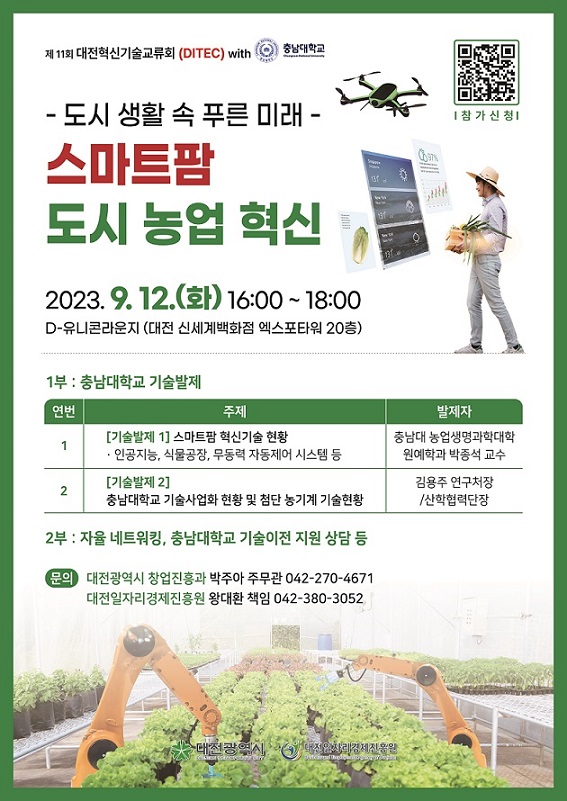 참여 신청은 대전시 중소기업지원 포털 대전비즈를 통해 오는 6일부터 12일까지 온라인으로 접수하거나, 네이버폼, 또는 포스터 상단 QR코드에서 가능하다.