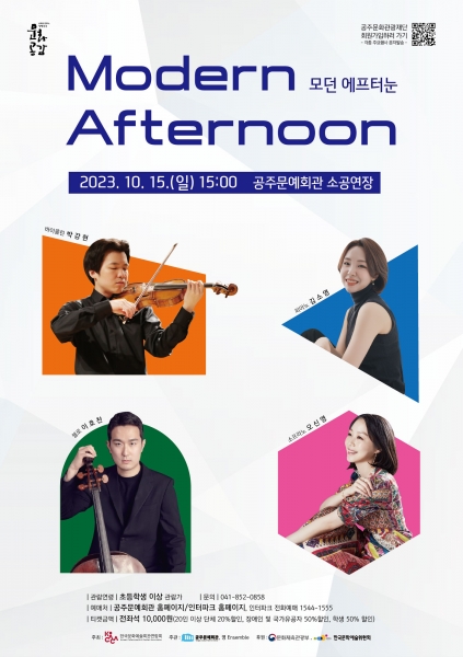 [Ytv영상스토리] 공주문화관광재단은 10월 15일 오후 3시 공주문예회관 소공연장에서 영앙상블의 ‘모던 에프터눈’ 공연을 진행한다.