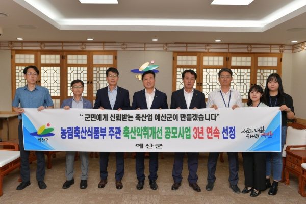 최재구 예산군수는 “축산악취 개선을 위한 농식품부 공모사업에 3년 연속으로 선정될 수 있도록 함께 노력한 관계 공무원에게 감사의 인사를 전한다”며 “축산악취 개선을 축산 분야 최우선 공약 목표로 추진하고 있는 만큼 군민이 체감할 수 있는 축산악취 개선이 이뤄질 수 있도록 노력해주기 바란다”고 당부했다.