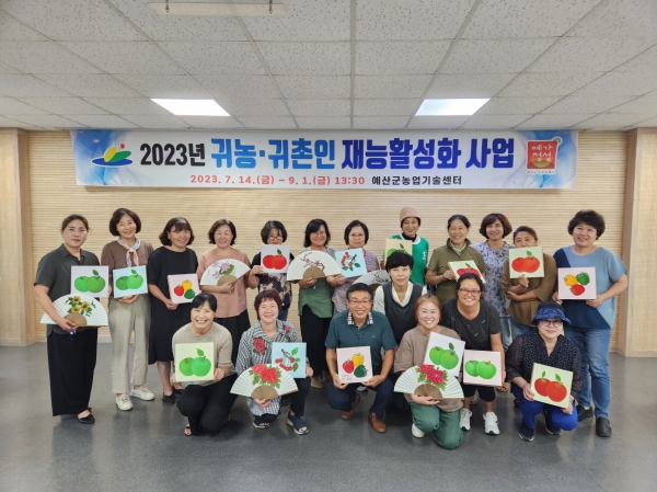 귀농·귀촌인 강사는 군민에게 심플 카드지갑·지퍼 반지갑 한국화 부채·족자·액자 제작 등의 문화교육을 제공했으며 군민은 예산군의 정보, 농사지식 및 경험 등을 강사와 나누면서 건전한 귀농·귀촌 문화를 조성했다.