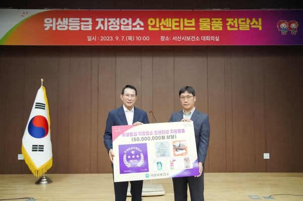 [Ytv영상스토리] 충남 서산시는 지난 7일 서산시보건소에서 지난해 음식점 위생등급 지정업소 대표업소 78개소에 대해 인센티브 지원 물품 전달식을 개최했다고 밝혔다.
