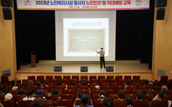 [Ytv영상스토리] 충남 서산시는 충남노인보호전문기관 주관으로 지난 7일 서산문화원에서 노인복지시설 종사자 200여명을 대상으로 노인 인권 및 학대 예방 교육을 했다고 밝혔다.