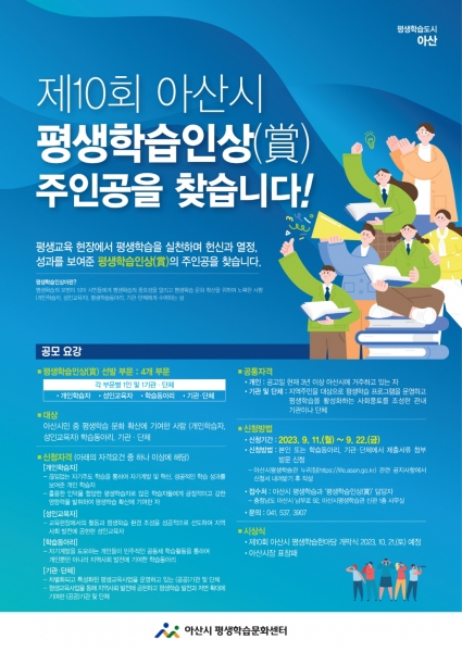 제10회 아산시 평생학습인상(賞) 후보자 모집 홍보지(사진=아산시)