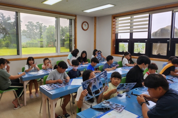 전달된 해양생물 과학꾸러미 세트는 범고래 3D 입체퍼즐, 장수거북, 붉은바다거북, 푸른바다거북, 참돌고래, 낫돌고래 등 다양한 스티커 컬러링으로 구성돼 아이들에게 큰 호응을 얻었다.