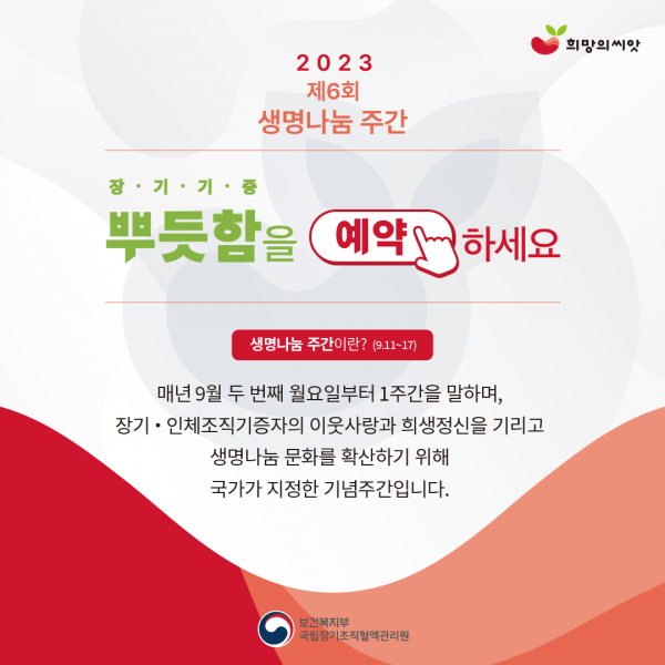 생명나눔 주간은 매년 9월 두 번째 주로 장기 등 기증자의 이웃사랑과 희생정신을 기리고 생명나눔 문화를 확산하기 위한 다양한 행사를 시행하고 있다.