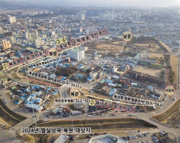 이와 함께 최근 북서리방앗간 주변 미매입된 부지매입을 완료하면서 서문지부터 북문지 구간, 북문지 동측부터 조양문 구간에 이르는 멸실 성벽 복원·정비가 더욱 탄력을 받을 것으로 보인다.