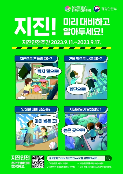 뿐만 아니라 행정안전부에서 운영하는 지진안전 누리집을 통해 지진안전에 관한 다양한 정보 및 9월 한 달간 진행하는 온라인 캠페인을 확인할 수 있다.