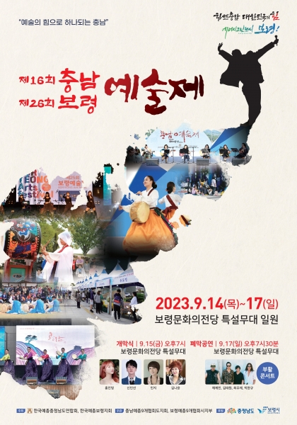 한국예총충청남도연합회와 한국예총보령지회이 주관하고 충청남도와 보령시가 후원하는‘충남·보령 예술제’는 국악, 미술, 사진, 무용, 가요제, 연극 등 다양한 장르를 총망라하는 예술대전으로 충청남도와 보령을 대표하는 모든 예술단체가 참여한다.