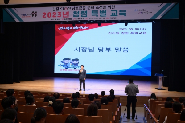 [Ytv영상스토리] 논산시가 공직사회 내 ‘갑질’을 예방하고 직원 간 상호 존중하는 문화를 조성하고자 청렴 특별교육을 실시했다.