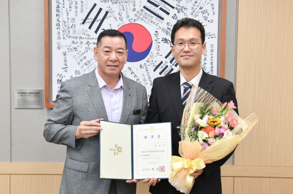 11일 시에 따르면, 최원철 시장은 최근 시청 접견실에서 공주시충남연정국악단 예술감독에 위촉된 김성우 지휘자에게 위촉장을 수여했다.