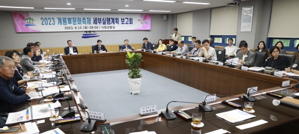 12일 시청 상황실에서 각 부서장과 관계 공무원 등 50여명이 참석한 가운데 ‘2023계룡軍문화축제’(이하 ‘축제’) 세부실행계획 보고회를 열었다(사진=계룡시)