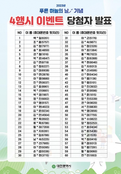 대전시‘푸른 하늘의 날’4행시 이벤트 당첨자 발표