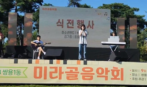 [Ytv영상스토리] 예산군학교밖청소년지원센터는 꿈드림 밴드 ‘나로’가 천안시 쌍용공원에서 열린 제5회 미라골 음악제에서 식전 무대 공연을 진행했다고 13일 밝혔다.