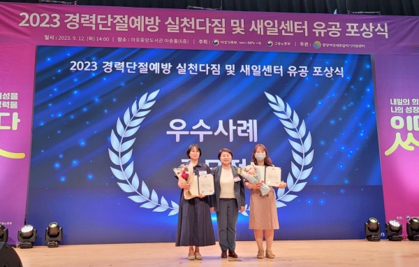 지난 12일 서울마포중앙도서관에서 개최된 ‘2023년 경력단절예방 선포 및 여성새로일하기센터 유공 포상식’에서 공주여성새로일하기센터가 개인 부문 ‘대상’을 수상했다(사진=공주시)
