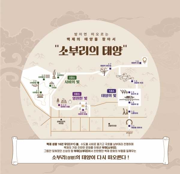 이번 미디어아트 행사는 3개의 코스로 나눠 흥미로운 사비백제 이야기를 들려줄 계획이다.