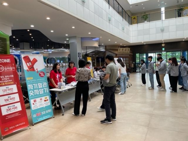 사업장에 홍보 부스를 설치하고 사업장 근로자들을 대상으로 혈압·혈당 측정 맞춤형 건강상담 심뇌혈관질환 9대 수칙 안내 심뇌혈관질환 이해하기 이벤트 홍보 등을 실시했다.