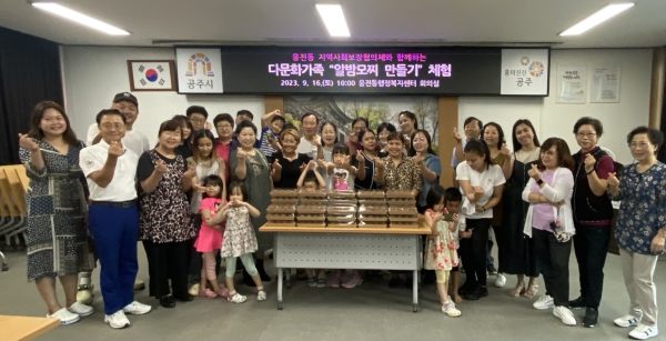 지난 16일 지역사회보장협의체와 관내 거주 다문화가족들과 함께 알밤모찌 떡 만들기 체험활동을 실시했다(사진=공주시)