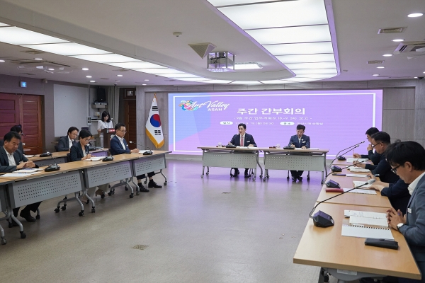 이밖에 박 시장은 추석 대비 공직기강 확립 명절 후원 물품 촉진 전국 청소년 인문고전 말하기 대회 대비, 강좌 프로그램 운영 피나클랜드 국화축제 등 민간행사 홍보 ‘물길따라 200리 자전거도로’ 종합 점검 신정호 공원 잔디 보수 온양향교 유림회관 증축방안 검토 재즈페스티벌 위드 자라삼 아산시민 50% 할인 증빙자료 간소화 텀블러 세척기 본관 설치 등을 지시했다.