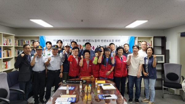 시와 아산시 비정규직지원센터가 공동으로 추진하는 이번 개선사업은, 산업안전보건법 개정으로 휴게시설 설치가 의무화됨에 따라 경비·청소노동자 휴게시설이 열악한 아파트에 휴게시설 설치 및 환경 개선을 지원하는 사업이다.
