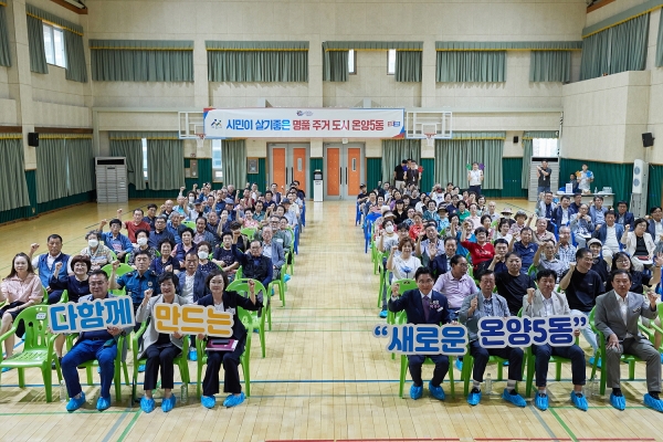 박 시장은 “온양5동은 도시의 편리함과 전원생활의 평안함을 함께 누릴 수 있는 명품 주거단지로 조성될 것”이며 “온양5동의 발전을 위해 여러분이 일상생활에서 느낀 크고 작은 불편함이나 지역발전을 위한 건의 사항을 듣기 위해 마련된 자리이니만큼 즐거운 소통의 시간이 되길 기대한다”고 말했다.