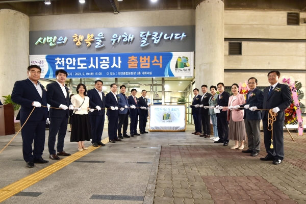 박상돈 천안시장은 “천안도시공사 출범을 축하하며 성공적인 출발을 위해 노력을 아끼지 않고 뜻을 같이해 준 모든 분들에게 감사의 말씀을 전한다”며 “천안도시공사 설립이 공공성과 수익성을 모두 갖춘 도시개발 사업을 통해 천안시의 미래지향적인 발전에 큰 주춧돌이 될 것으로 기대한다”고 말했다.