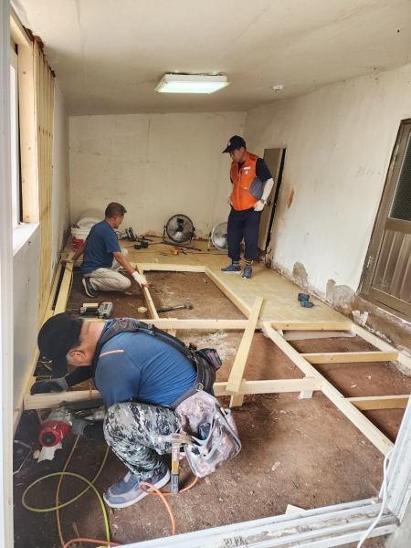 해당 주택의 거실과 방안은 곰팡이가 있어 가구원들의 건강이 우려되는 상황이었으며 거실 바닥은 내려앉아 생활하기에 매우 불편했다.