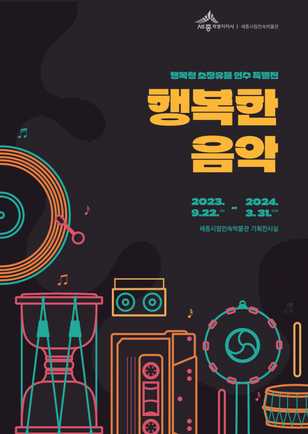 22일부터 내년 3월 31일까지 세종시립민속박물관에서 ‘행복한 음악’이라는 이름으로 열리는 이번 전시회에서는 행복청에서 수집해 세종시로 이관된 유물 중 음악과 관련한 38점이 선을 보인다.