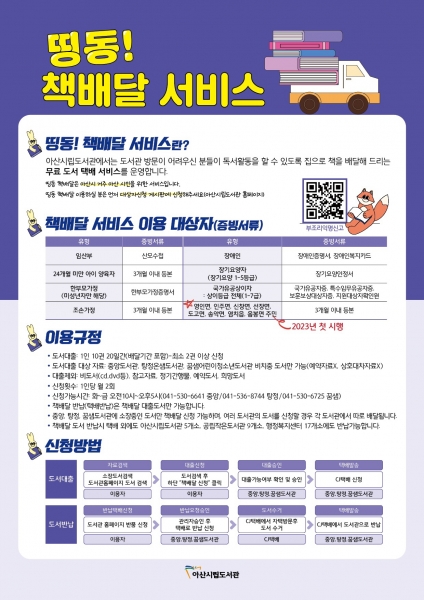 [Ytv영상스토리] 아산시는 올해 ‘띵동 책배달 서비스’ 사업 대상자를 확대해 주민의 큰 호응을 얻고 있다고 밝혔다.