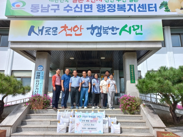 [Ytv영상스토리] 천안시 수신면은 지난 23일 달빛사랑봉사단이 추석 명절을 맞이해 선물 꾸러미를 후원했다고 밝혔다.