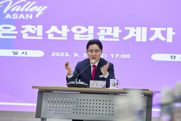 박 시장은 “세계적인 온천도시를 벤치마킹하기 위해 독일 왕실온천 바트키싱엔을 찾은 적이 있다 수백 년간 온천관광 도시 브랜드를 유지하고 있다”며 “아산도 1300년 역사의 온천이자 세종대왕이 다녀가신 왕실온천의 자산을 갖고 있다 하지만 예전 영광에 비해 많이 침체됐다”고 진단했다.