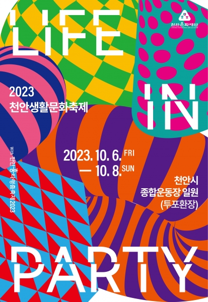 올해 천안생활문화축제는 천안흥타령춤축제 2023과 연계해 개최되며 부제는 ‘라이프 인 파티’로 ‘생활문화축제는 일상에서 즐기는 우리 모두의 파티’라는 의미를 담았다.