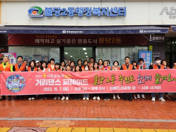 오는 10월 7일 오후 1시부터 3시까지 아름드리 공원 앞~천안시청 사거리 구간에서 펼쳐지는 불당동 거리댄스 퍼레이드는 37개 팀 1,900명이 참여해 주민들과 함께 즐기는 천안흥타령춤축제에서 빼놓을 수 없는 주요 프로그램이다.