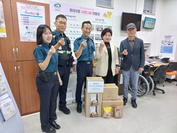[Ytv영상스토리] 천안시 원성2동은 지난 26일 천안동남경찰서 남산지구대가 지역 내 소외된 이웃을 위해 사용해 달라며 위문품을 전달했다고 밝혔다.