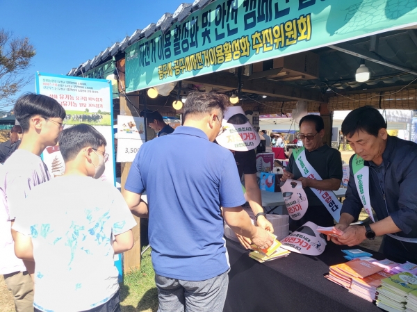 2023 대백제전이 열리는 금강신관공원 일원에서 공주시 자전거이용활성화추진위원회(위원장 이순종)와 합동으로 ‘자전거 이용 활성화 및 안전 캠페인’을 진행했다(사진=공주시)