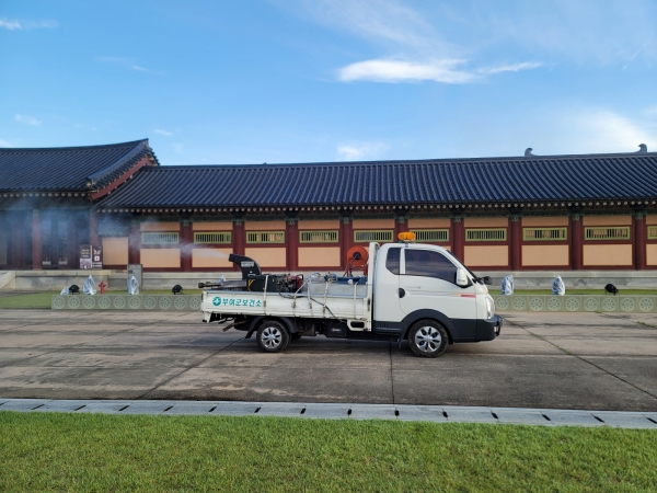 군은 부여문화단지·구드래 선착장 등 행사장 일원에 행사 시작 전부터 선제적 방역소독을 실시했다.