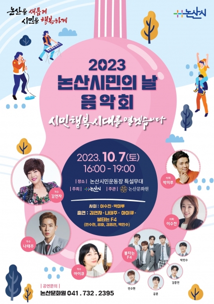 음악회에 함께 하고자 하는 시민은 사전 예매 절차 없이 공연 현장인 논산시민운동장으로 직접 방문하면 되며 선착순으로 착석할 수 있다.